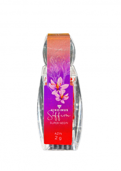 This 2g Azin jar contains high-quality Super Negin Saffron – bright red threads with rich flavour, deep aroma, and intense colouring. Ideal for cooking, drinks, and desserts.